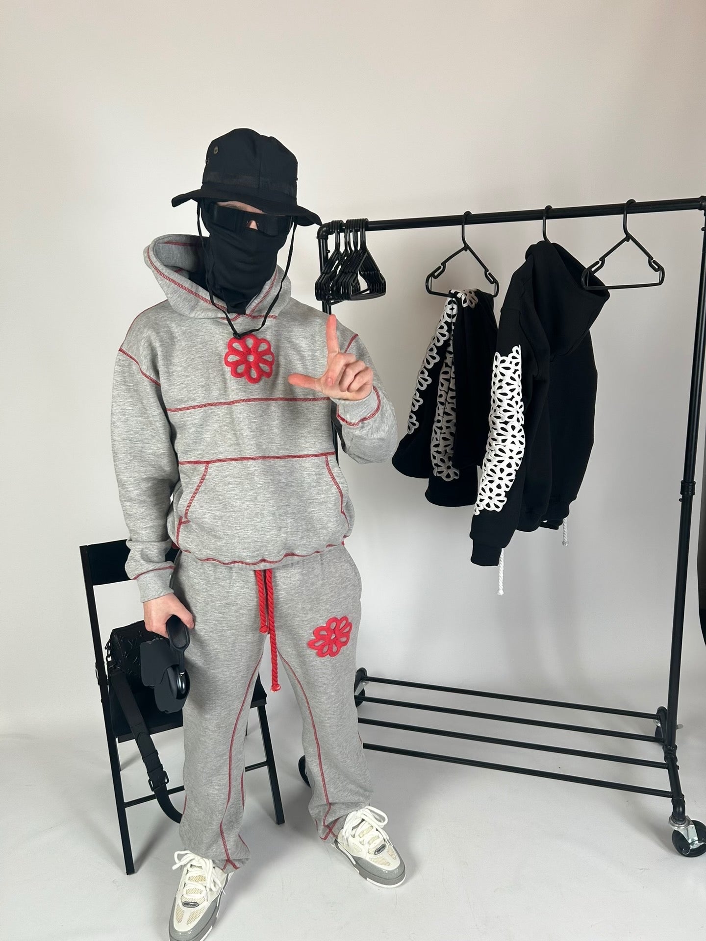 THIRTY3 OVERSTITCHED GREY AND RED TRACKSUIT